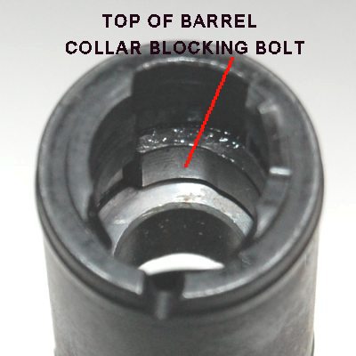 Collar has rotated, blocking the bolt lugs from fully seating | Collar properly aligned. |