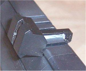 However, if you experience this problem there is something else you can check. The edges of the spare magazine well where the magazine catch rests was not properly shaped on some early stocks, particularly with the .376 Steyr Scouts, and may be sloped instead of square. The picture below is self explanatory.